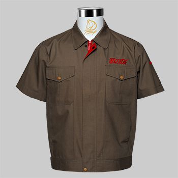 該款服裝采用可口可樂的經典色褐色,像可口可樂飲料的顏色,暗門襟內里搭配可口可樂LOGO的經典紅色,體現出企業形象,并統一了視覺效果。