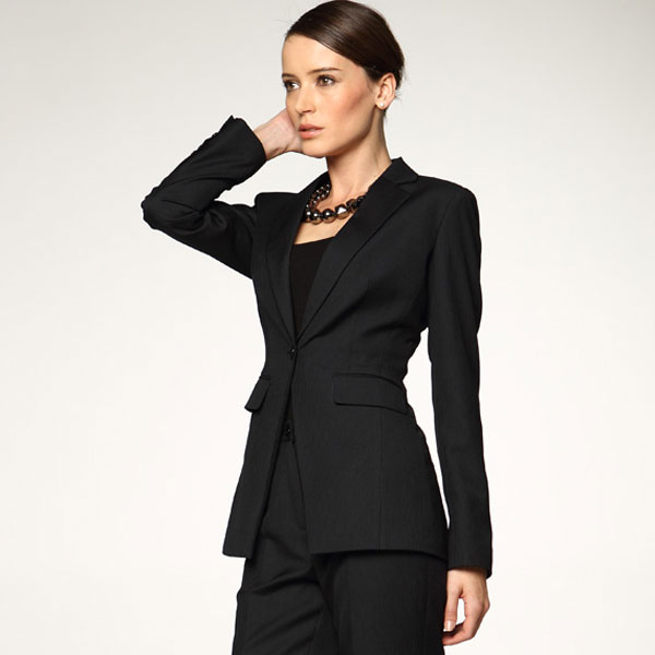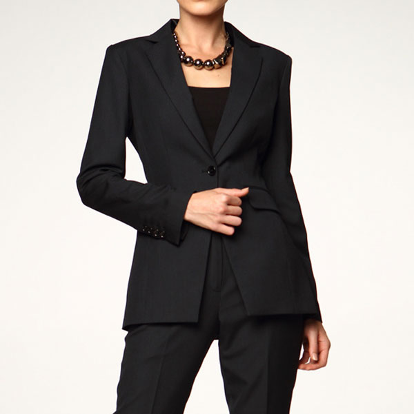 不用太多的描述,女士黑色條紋西服因為其適穿性一直是大眾的的西服首選之一。本款西裝精選優質全毛面料,配合精紡工藝挺刮抗皺易于打理,穿完后只要用衣架將其掛起過完一夜便可回復平整。黑色給人感覺冷靜穩重,的確實職業女性鐘愛的品質,因此成為絕大多數商務精英人士的首選。平駁領三粒扣設計沿用百年的經典款式,不想自己有型而不張揚的你就大膽的選擇它吧,喜歡穿條紋西服的女士們可以來格尚進行西裝定做。